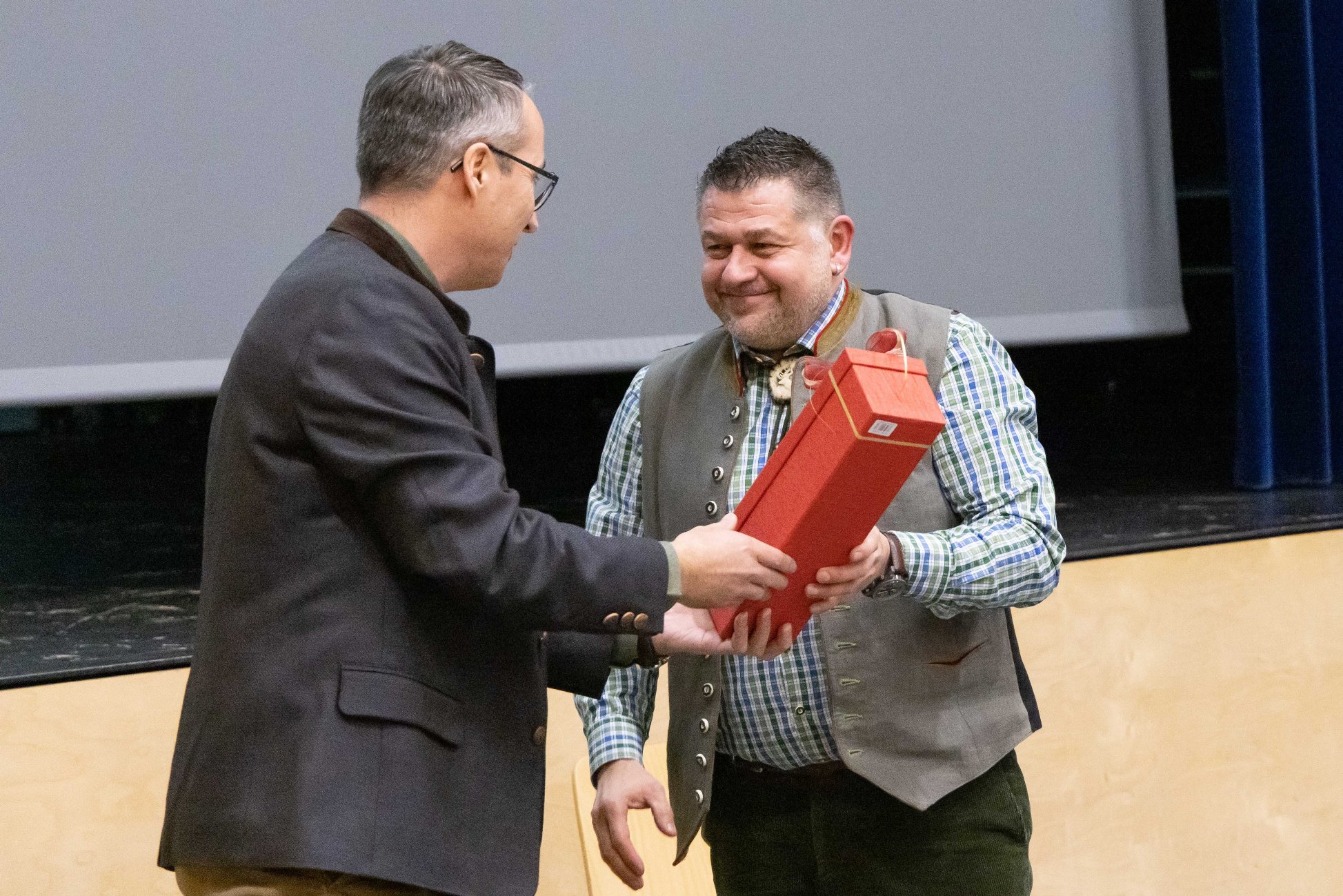 Grossen Dank und ein Präsent für den abtr. Präsident Martin Bättig (rechts)