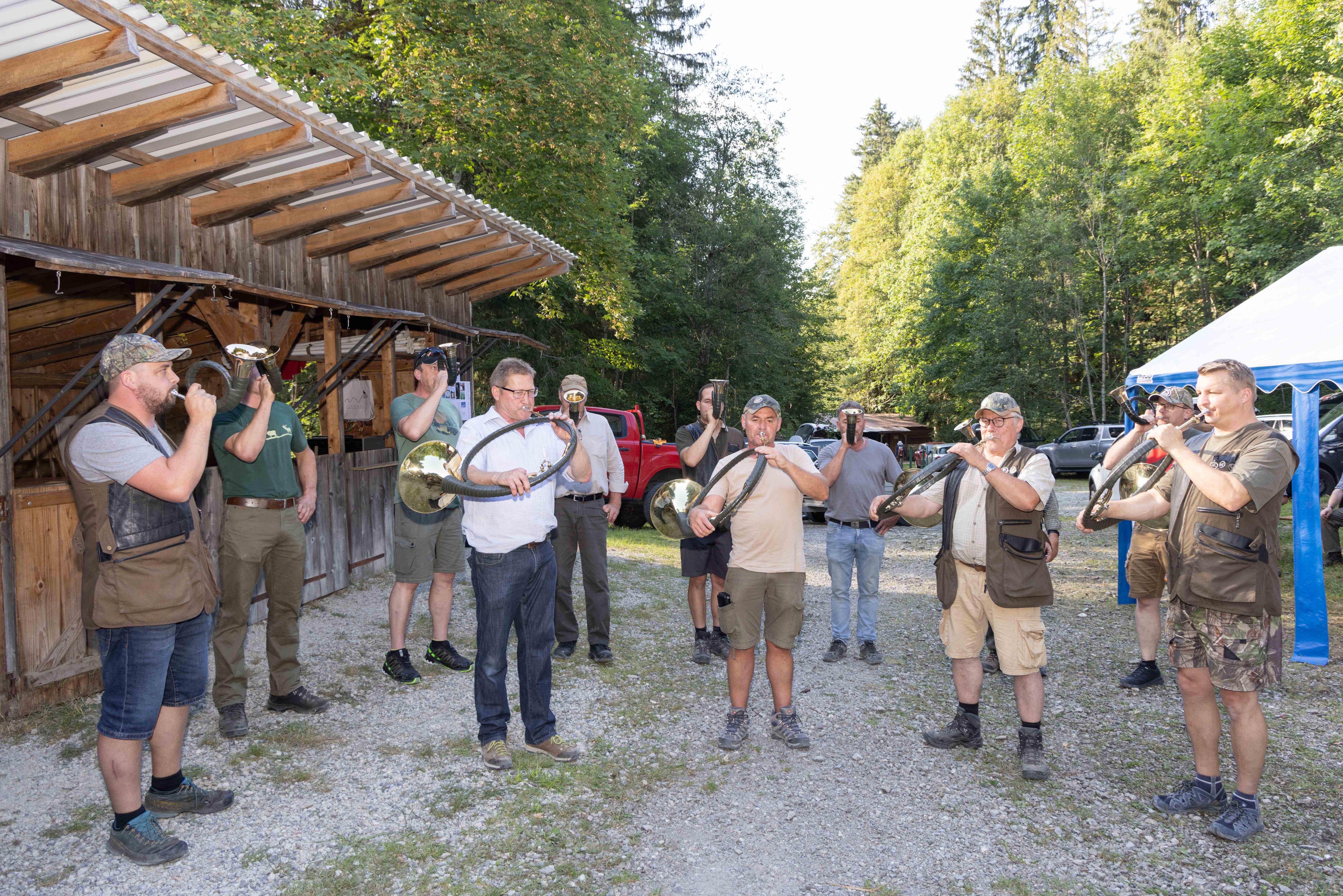 Jagdhornbläser vor dem Absenden