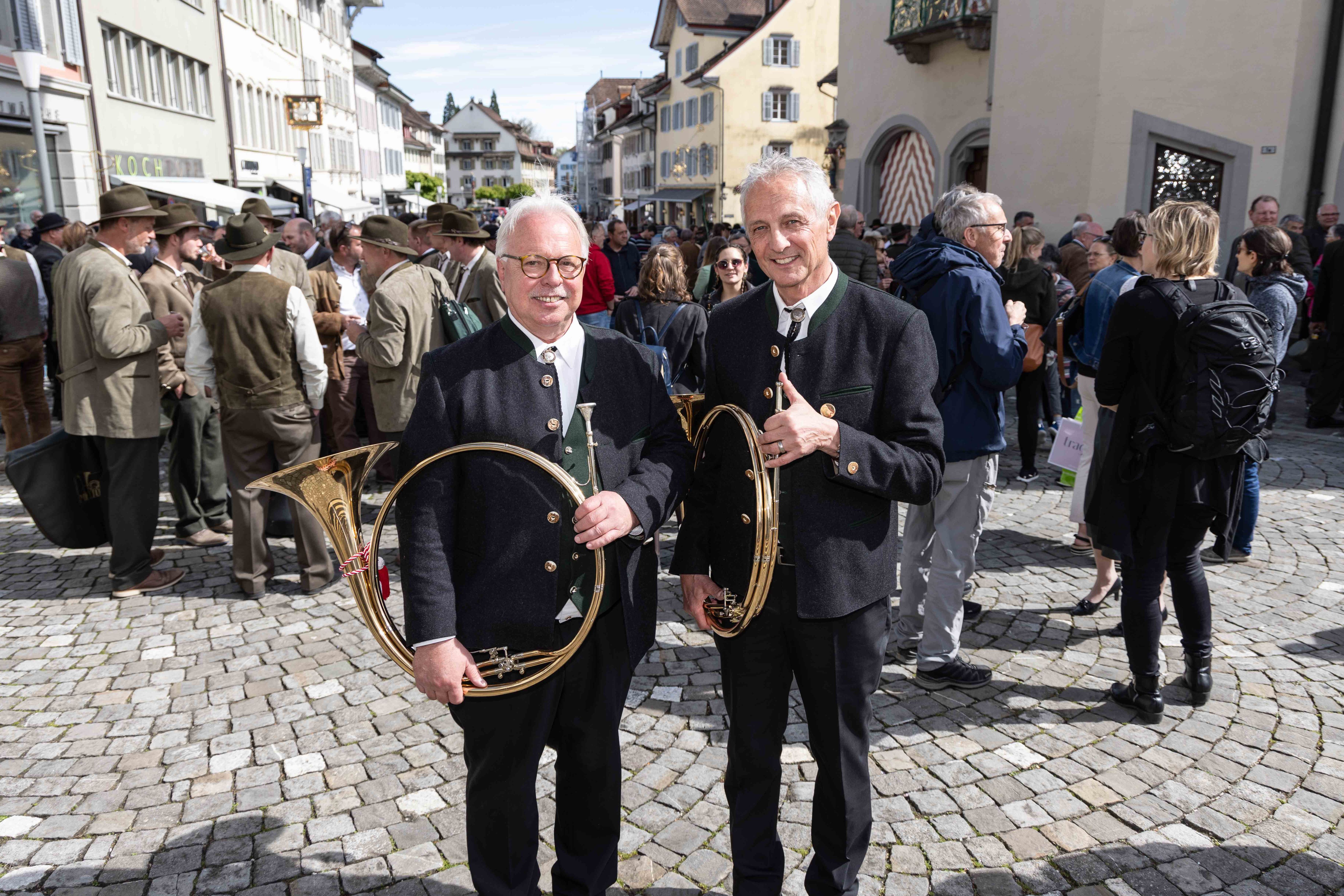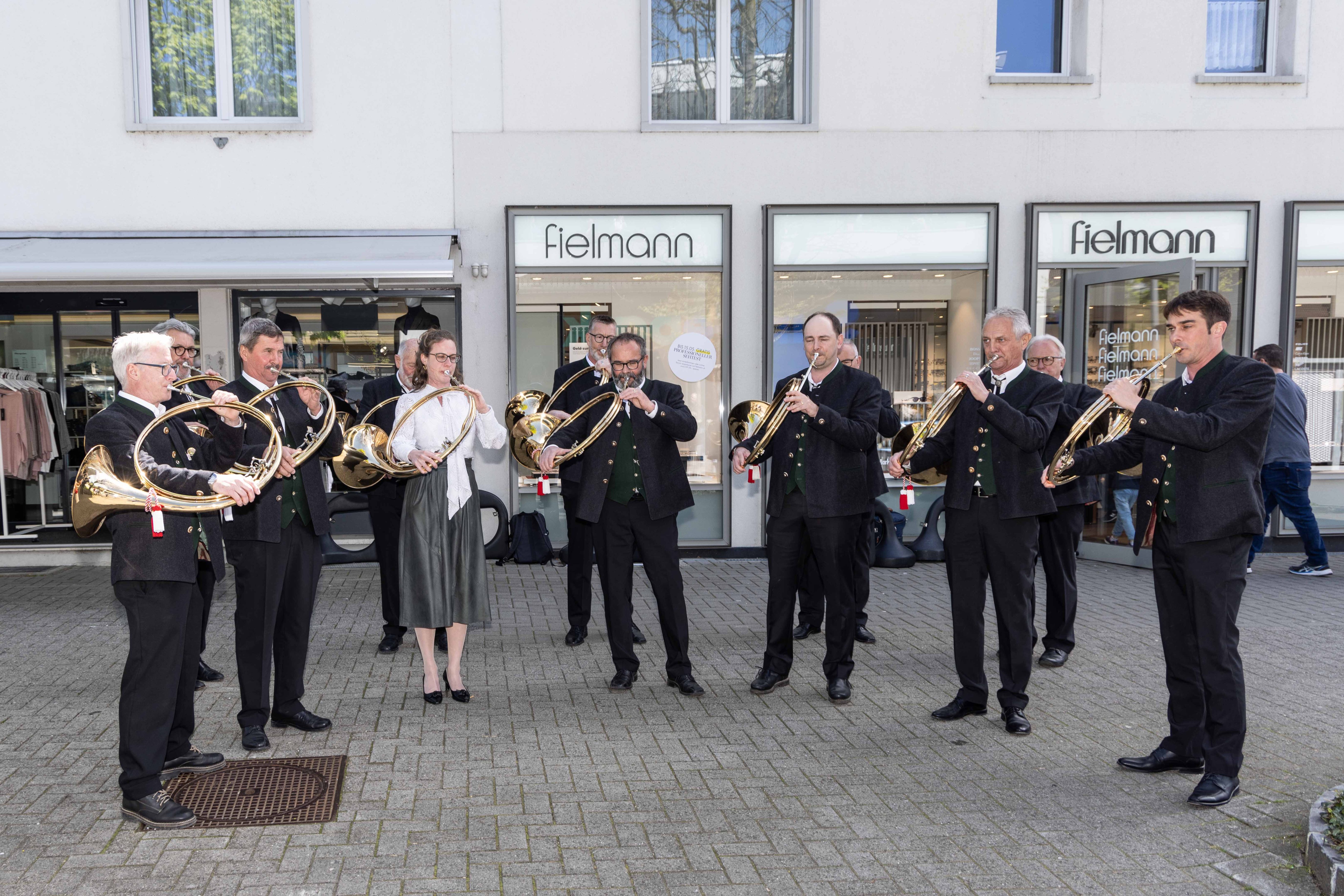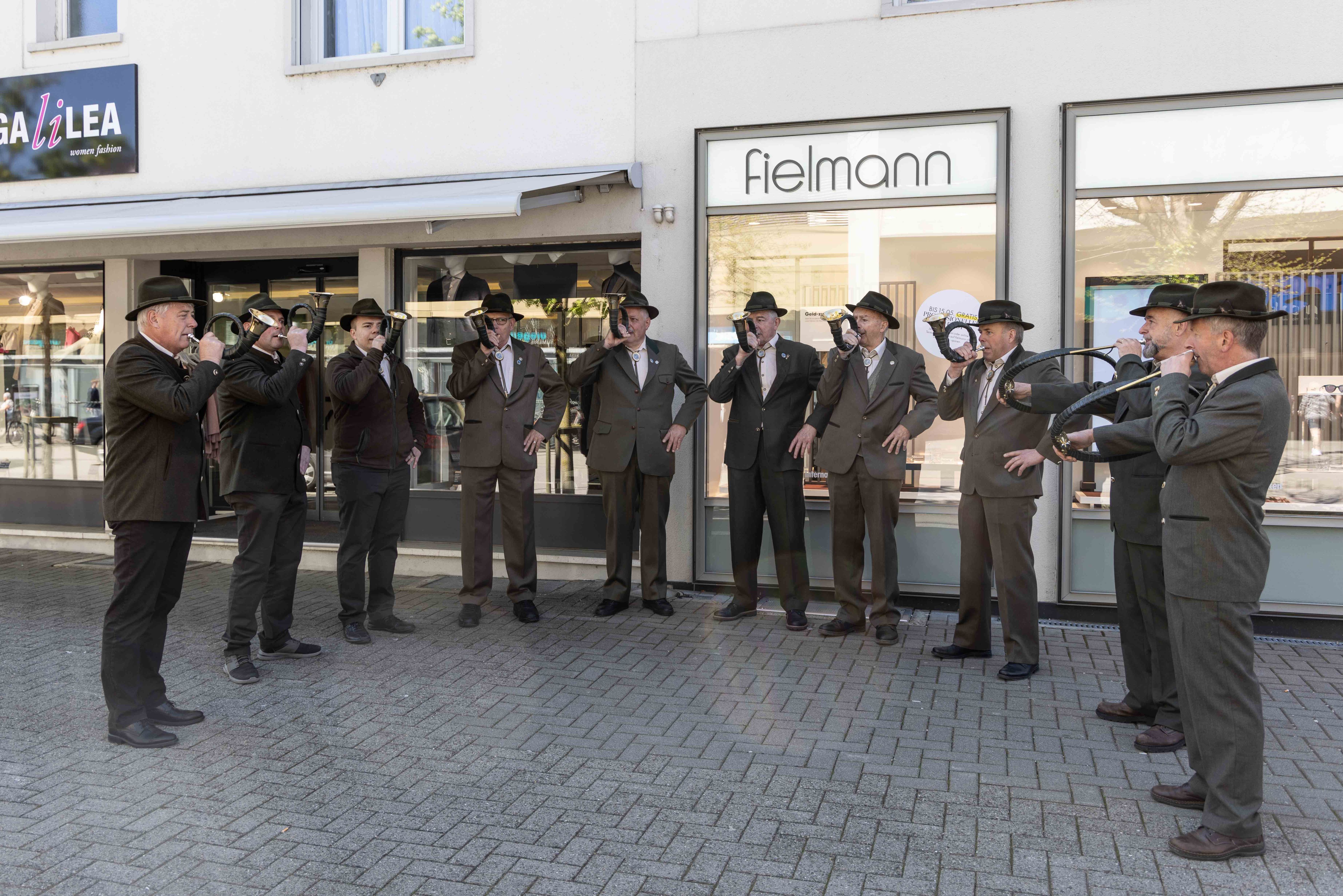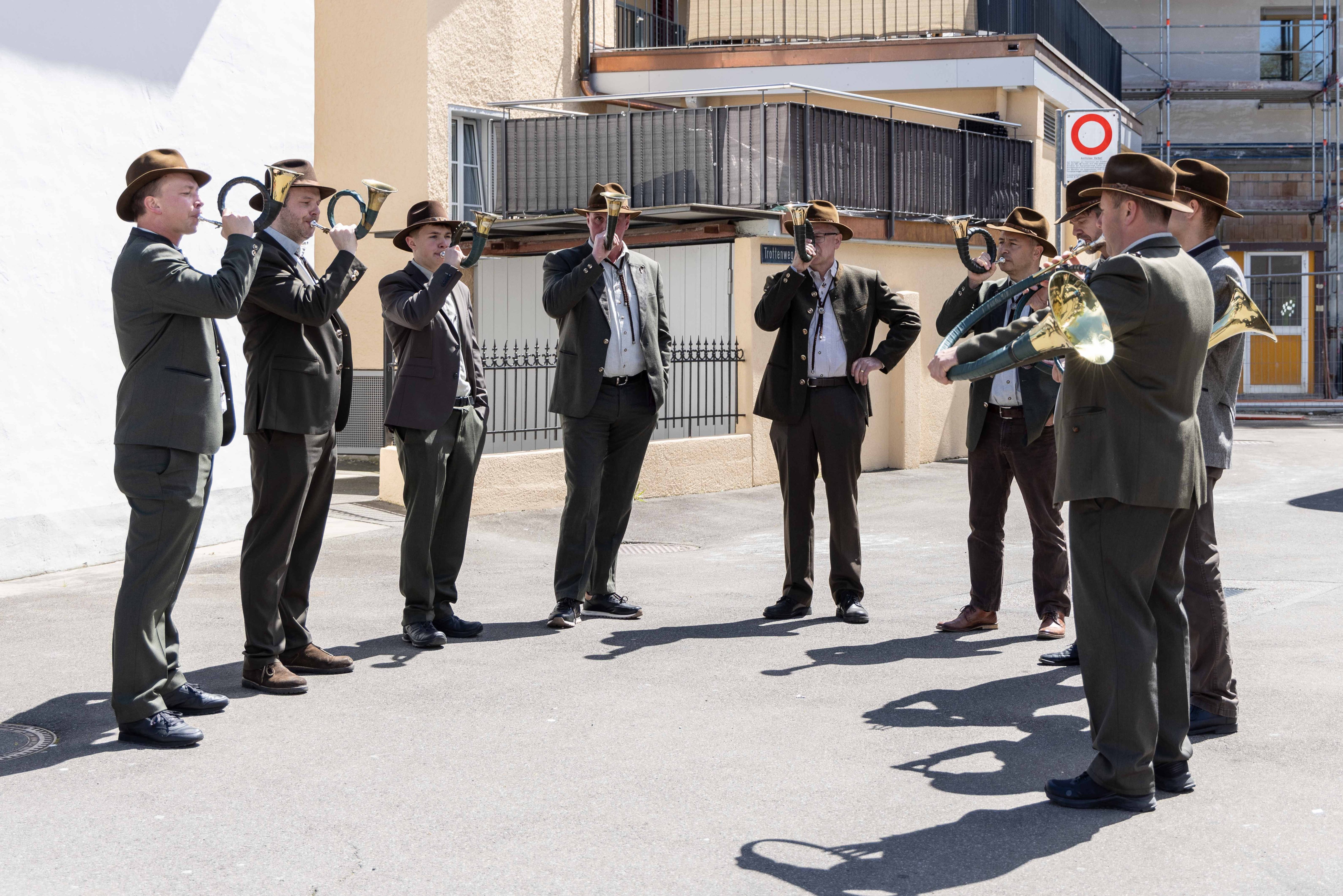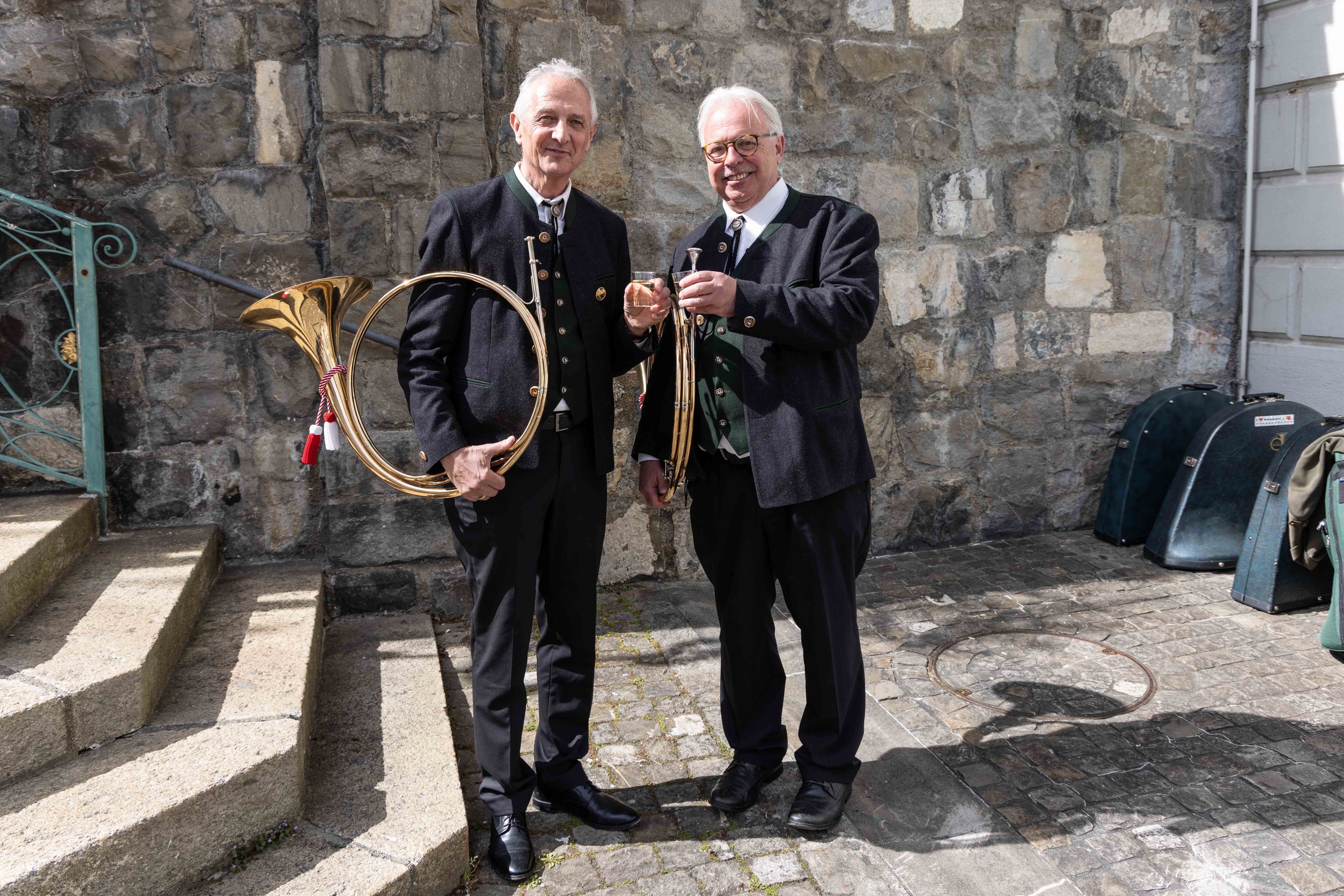 Vor Auftritt: gut gelaunte Jagdhornbläser Entlebuch