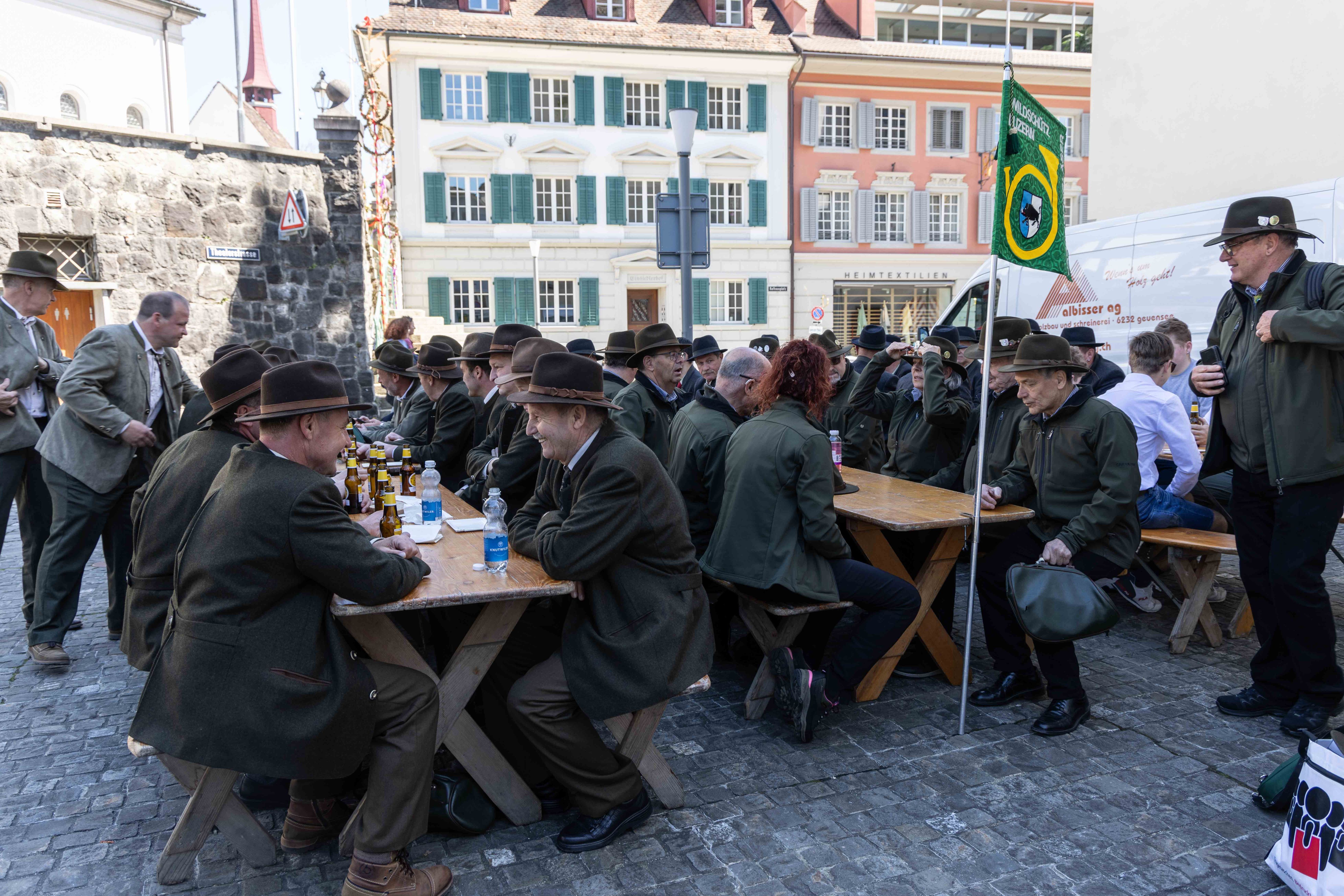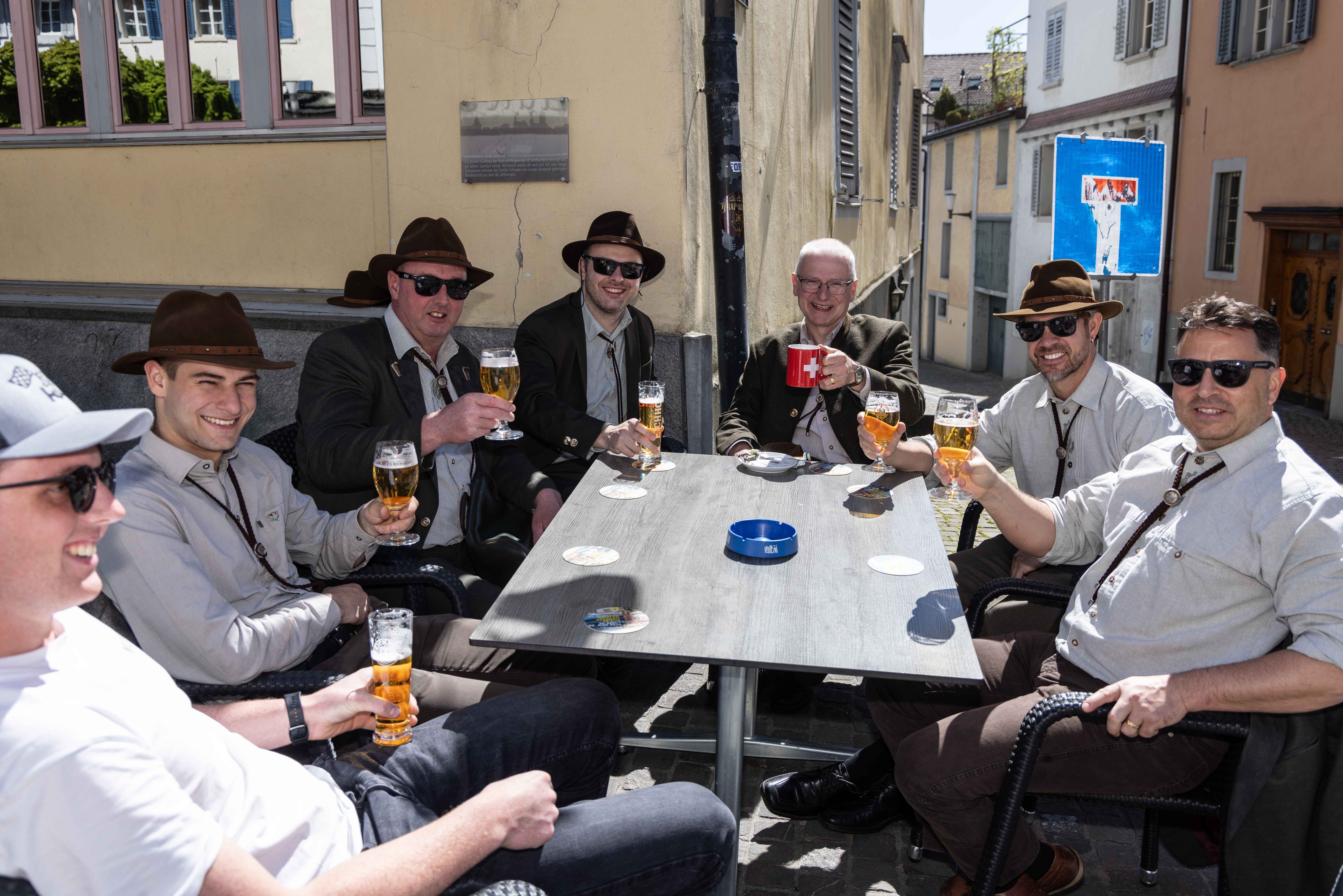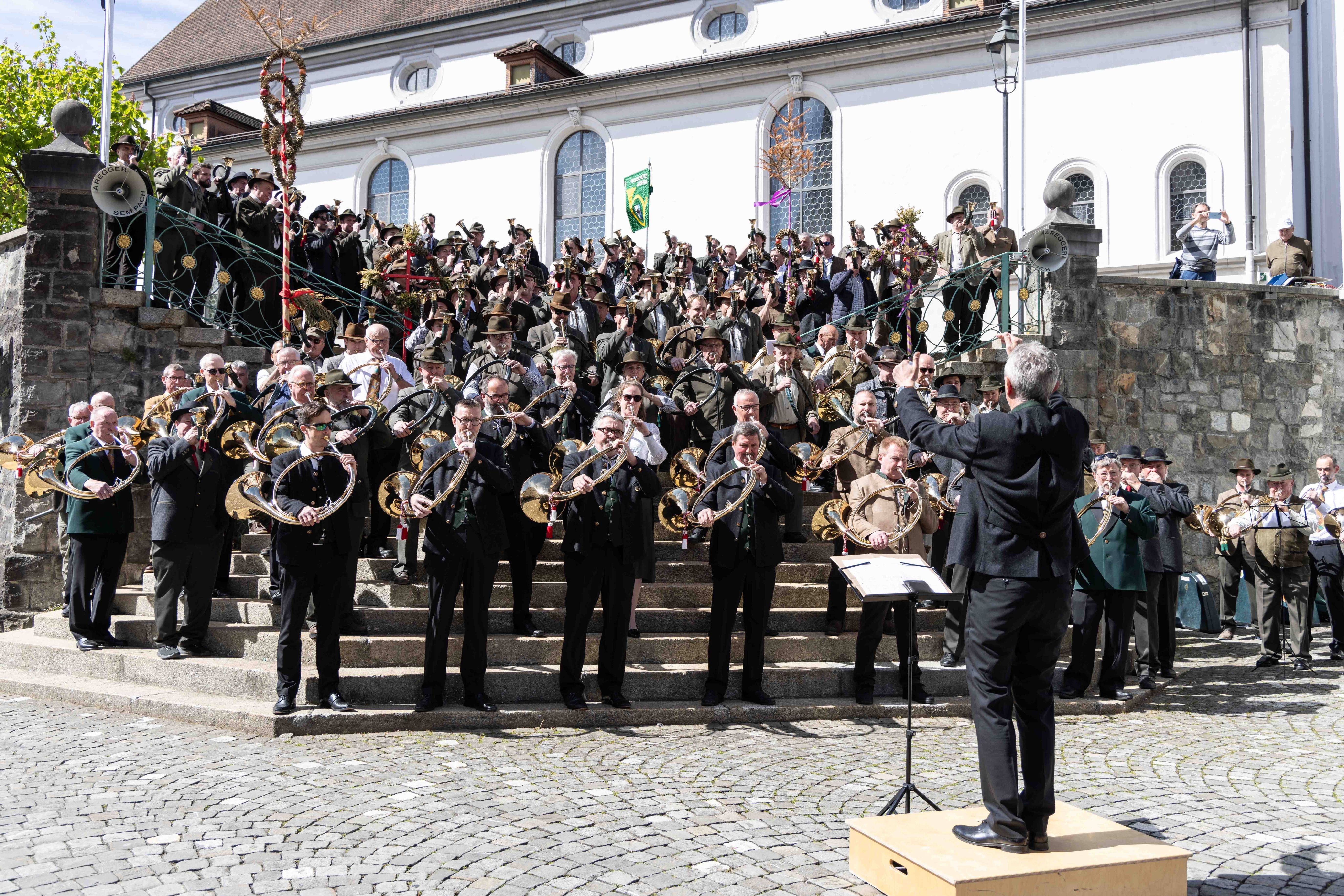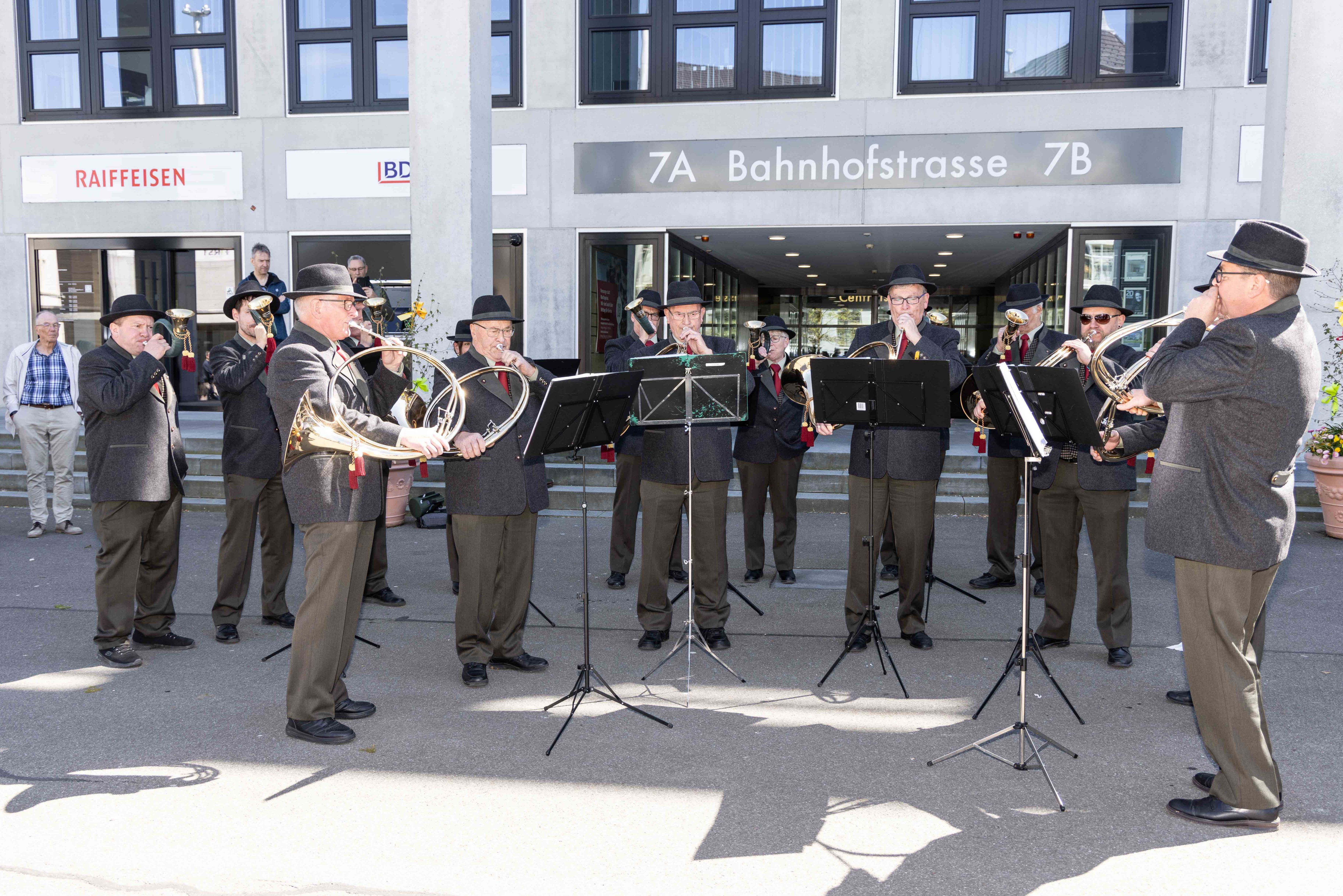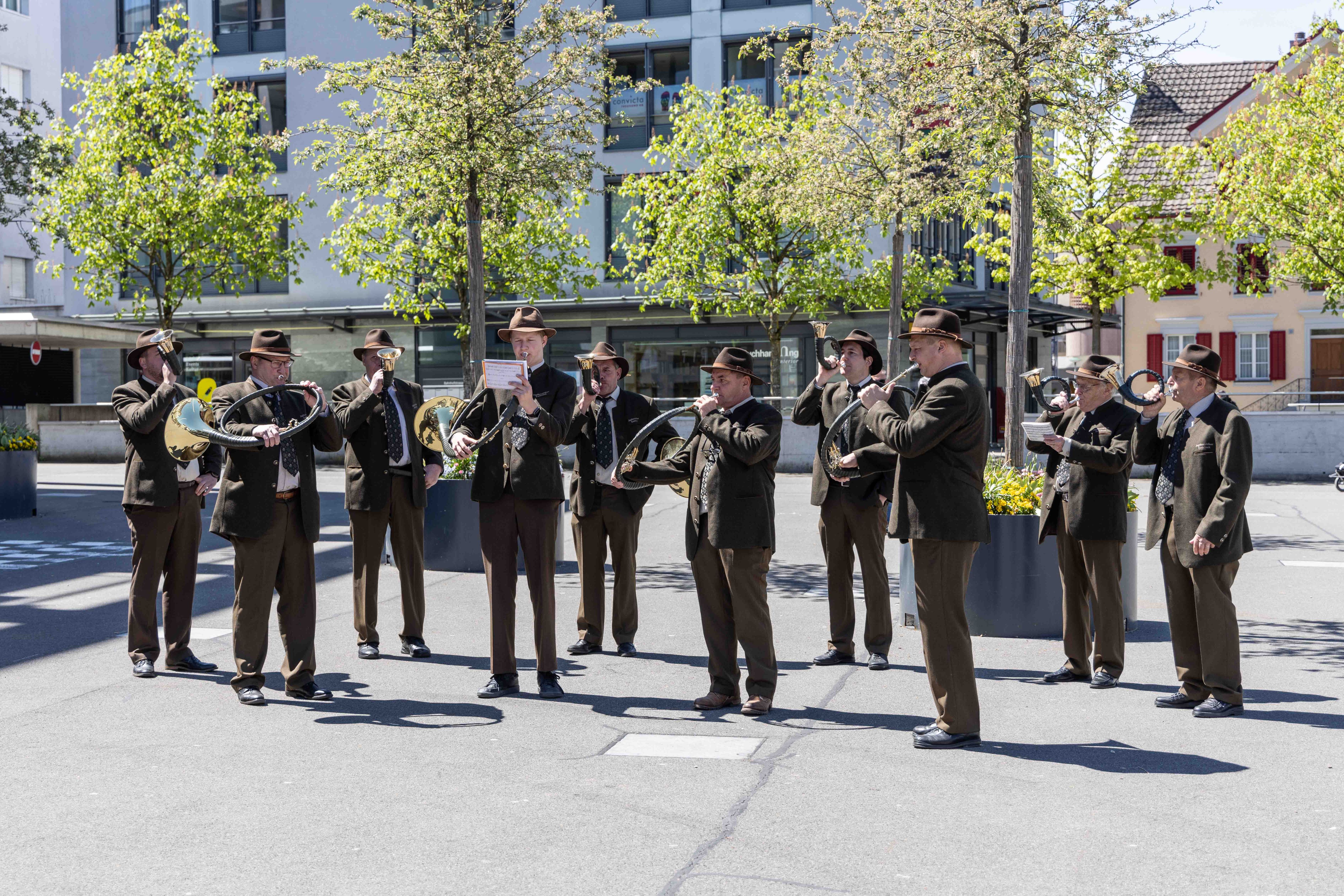 Vor Auftritt: gut gelaunte Jagdhornbläser Entlebuch